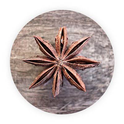 Coming from the evergreen Chinese Illicium verum, it is extracted from the star shaped pods of the fruit of this tree. With a flavour that is vaguely reminiscent of liquorice, it is famed for its distinct culinary applications and health benefits. Exquisite and rare, the spice comes from this oriental tree found in the far reaches of China. It first entered Europe in the 17th century, and has since become popular there as an unusual oriental spice that comes in whole star-shaped form or ground to a red-brown powder.